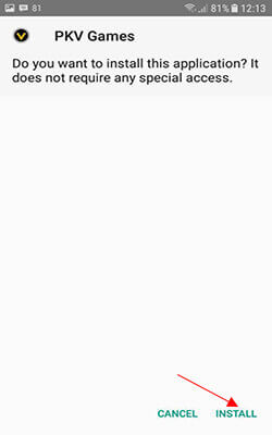 7. Setelah proses instalasi sudah selesai, maka akan muncul app PKV Games seperti gambar di bawah dan klik untuk masuk