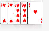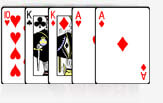 5 kartu yang berurutan dan memiliki corak yang sama. Jika ada player lain yang memiliki Straight Flush juga, maka pemenang ditentukan dari kartu yang memiliki nilai tertinggi dari urutan kartu tersebut. 3. Four of a Kind
